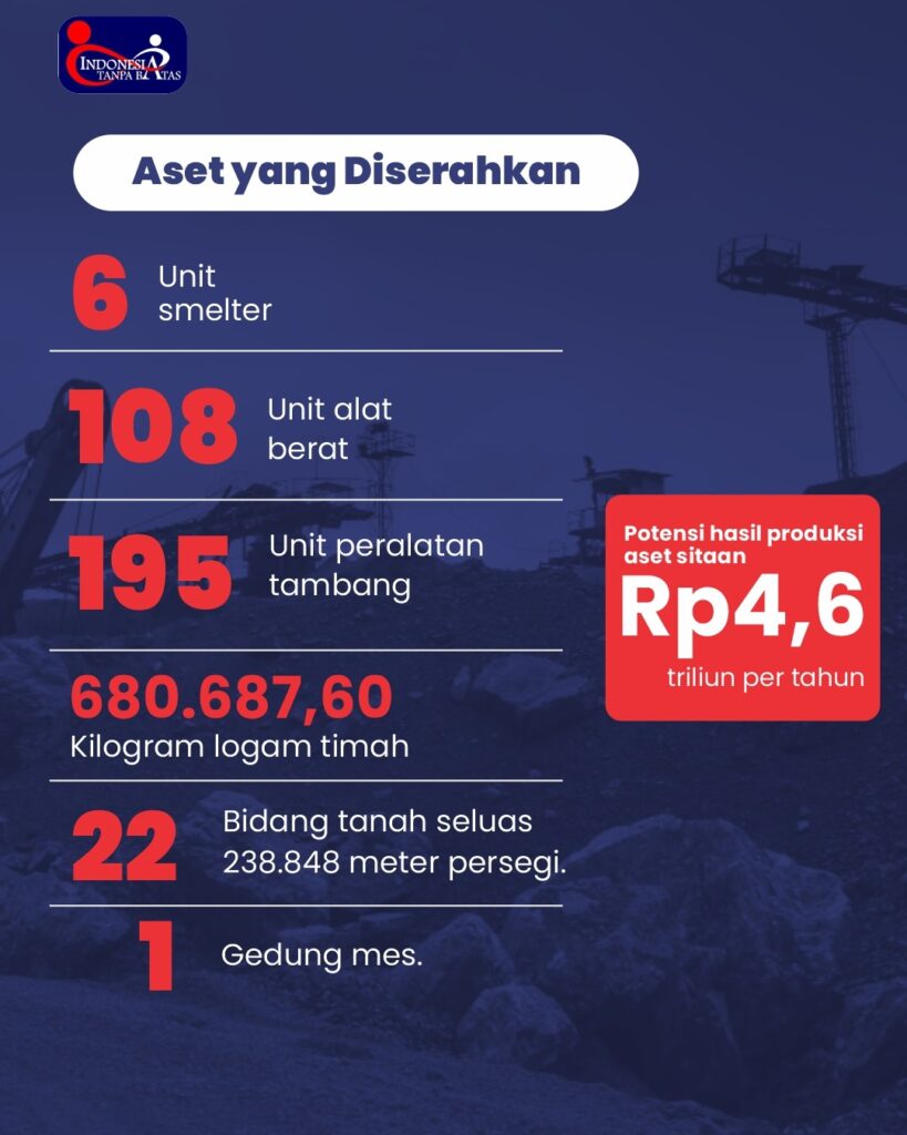 Nilai aset yang disita mencapai Rp6–7 triliun, belum termasuk potensi besar dari tanah jarang (rare earth/monasit) yang nilainya bisa jauh lebih tinggi.